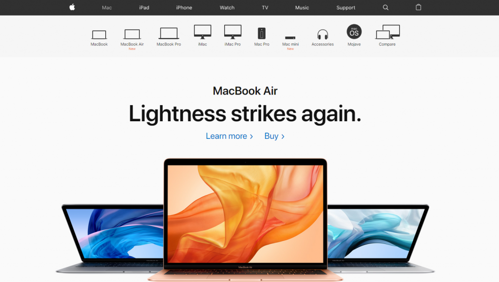 Whether it is a website’s sitemap or the options in a search bar, every feature needs to be visible and accessible to the user. The Mac page on Apple’s website can be treated as an accessibility epitome. The web page has every such detail that a user would need to understand the product types, speculations, and features better.