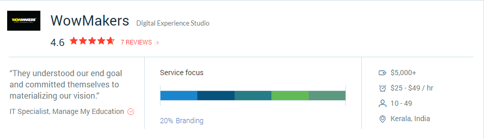Located in Washington, D.C., Clutch is a B2B ratings and reviews platform. Their analysts assign scores to the businesses on their site based on the services that they provide and their Ability to Deliver. The Ability to Deliver takes into account the market presence, awards, and client reviews of each vendor. The reviews are verified by the analyst team after interviewing previous clients over the phone or with in-depth, online questionnaires, giving them an unbiased account of each project. When asked, our clients have said great things about us and, in turn, Clutch considers us one of the best branding agencies in India. Here are some excerpts from their interviews: