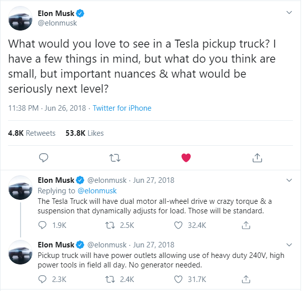 What Musk is doing is a case study in itself. He offered a utility truck, a sports car, and a tech gadget all in one.