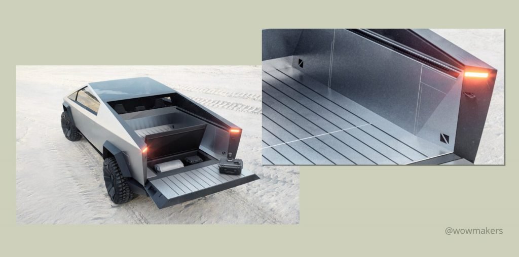 With unibody design, Cybertruck boasted reduced weight, improved fuel efficiency, and collision safety. Another reason Tesla went for this design is that they wanted a spacious vehicle, as they needed space for batteries.