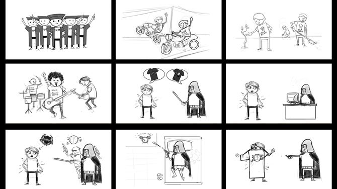 A script is a story in words, and a storyboard is a story in pictures. This stage has to be perfected before starting the animation. Our team uses ideas generated at brainstorming to create a script and storyboard with scene-by-scene detailing. The storyboard will have 3 kinds of information – a series of hand-drawn scenes, a description of each scene, and the voice-over for each scene.