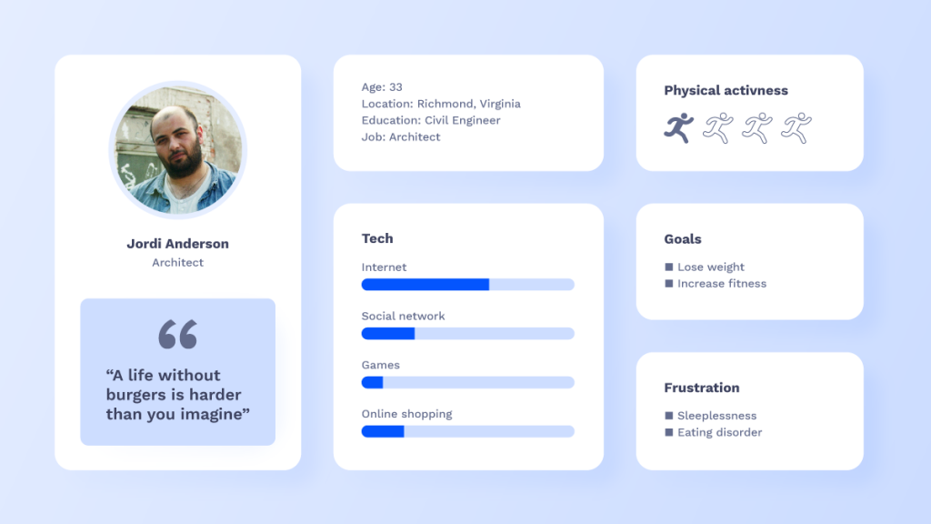 User Persona is where you represent your ideal customer or the best target audience of your product or service. It shows the demographics, needs, pain points, motivations, and behavior of a target audience.