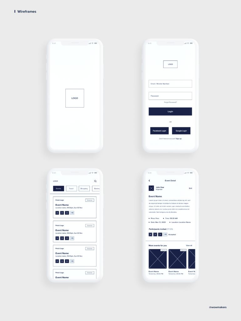 - Low-fidelity wireframes (fast, easy and cheap to produce rough-sketches)