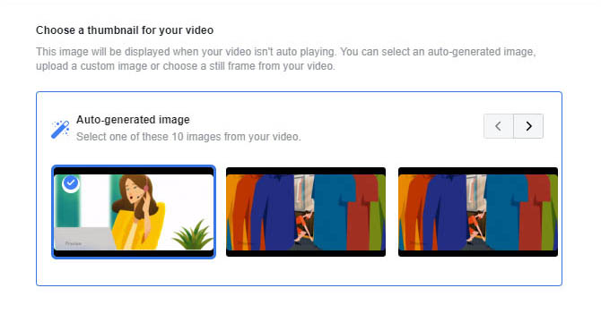 Facebook lifts ten screencaps from the video and offers it as an option for the thumbnail. If you’re okay with the options offered, then that can already be your video thumbnail. However, if you want to upload a thumbnail that you created, that can be done as well.